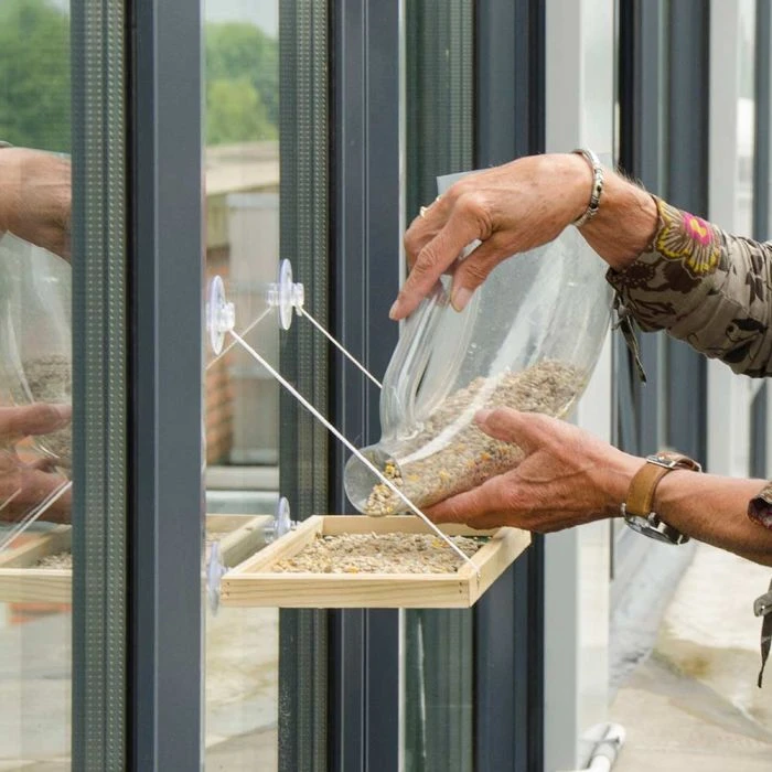 The BirdSwing Vide XL is a uniquely designed bird table that can be attached to a window and provides a fantastic view of the birds feeding. It will be used by species that prefer to feed on the ground or a table such as Robin, Dunnock and Blackbirds.