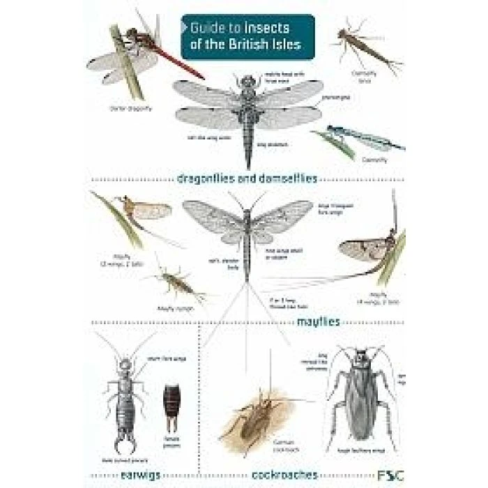 Avoiding technical jargon, this chart shows you precisely what to look out for to recognise mayflies, dragonflies, stoneflies, alderflies, snakeflies, scorpionflies, true flies, earwigs, cockroaches, grasshoppers, crickets, bees, wasps, ants, butterflies, moths, antlions, silverfish, firebrats, bristletails, thrips and many others.