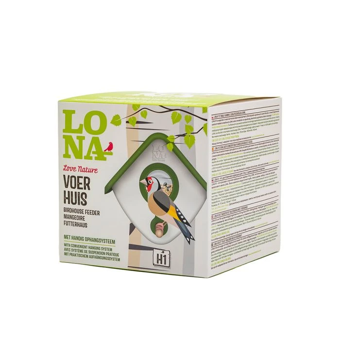 The LONA H1 beautiful and innovative feeding station for your small garden birds shaped like a cottage. The feeding station is suitable for all LONA Peanut Butter Jars, or simply fill with your favourite food or fat balls. The feeder can be used all year round and is easy to attach to a tree, fence or wall. Made from fully recyclable and durable materials.