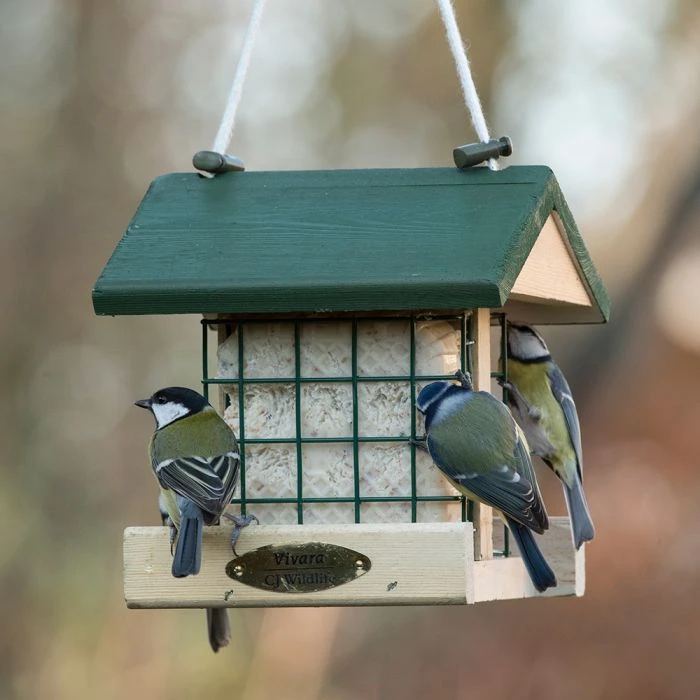 Peanut cakes can be fed either by feeders such as the National Trust Anna Recycled Peanut Cake Feeder or chopped up and scattered to appeal to more timid species.