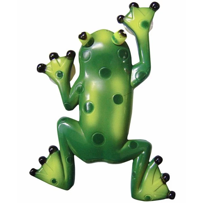 A Green Frog with outside thermometer with range a temperature of -21 to 121 degrees Fahrenheit (-30 to 50 degrees centigrade).